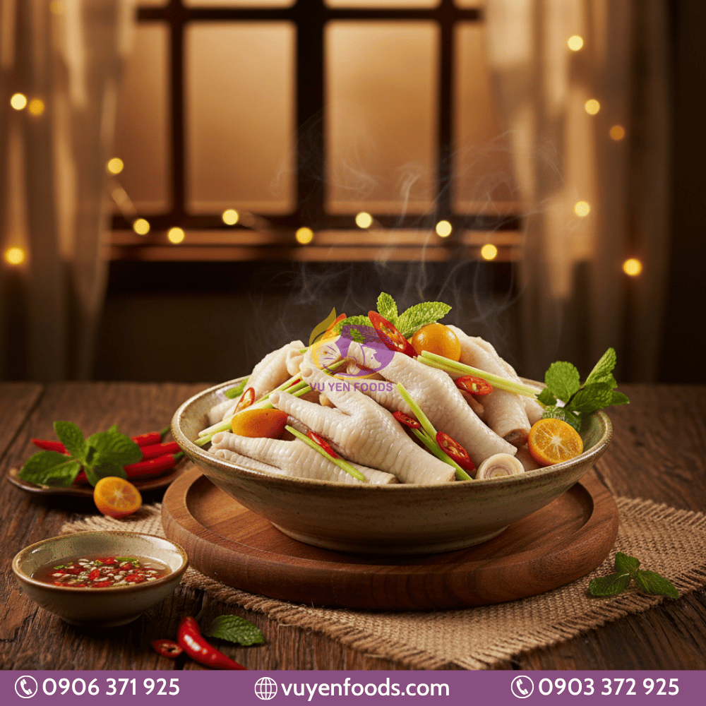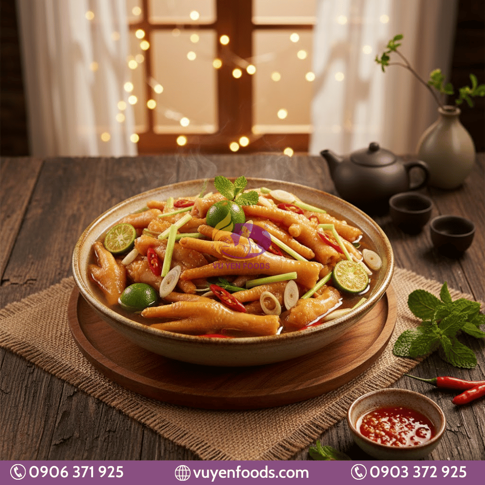 2. Chân gà ngâm sả tắc – Dùng chân gà đông lạnh Hungary hoặc chân gà rút xương