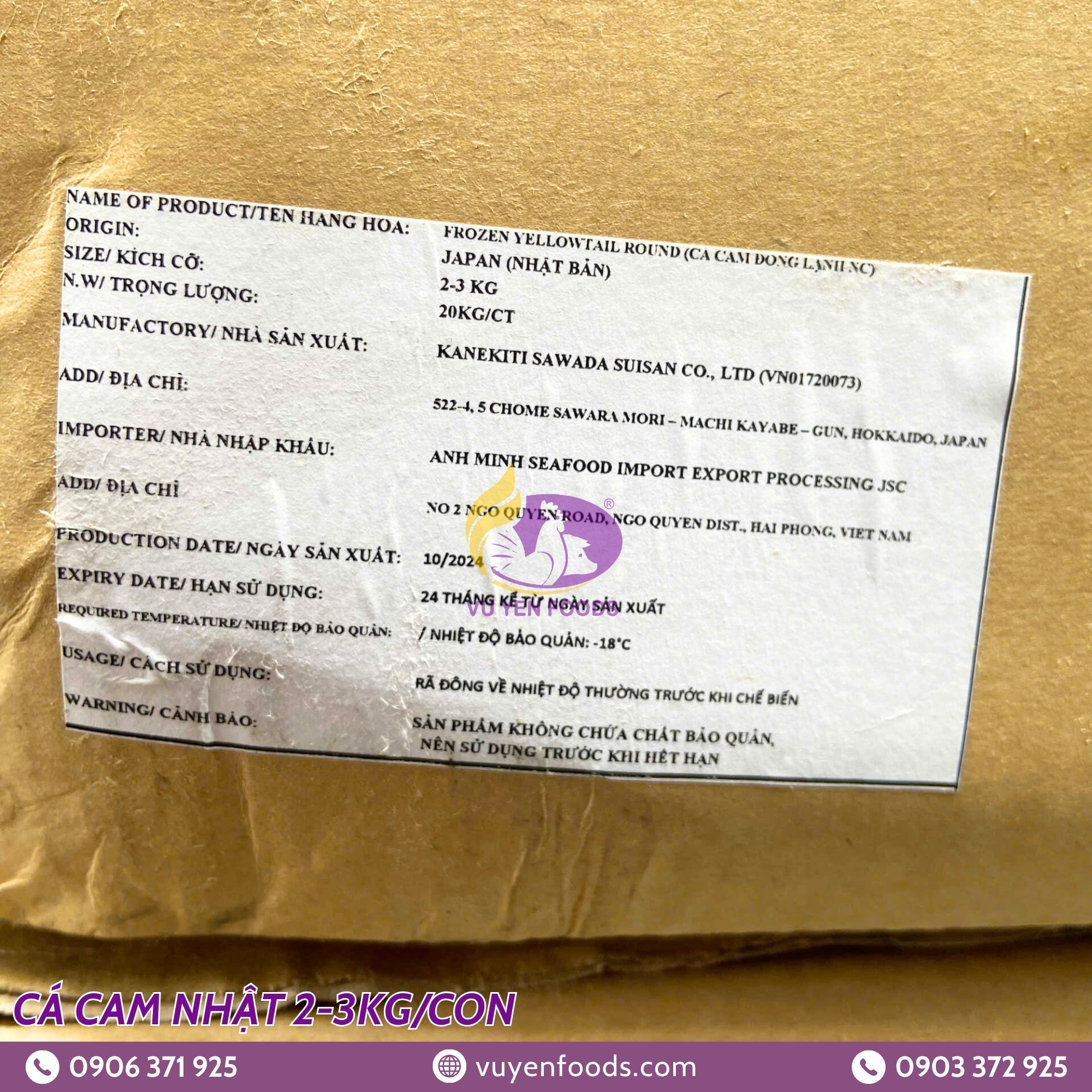 • Khối lượng: 20kg/thùng