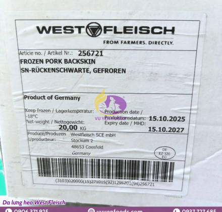 • Mã sản phẩm: DA LƯNG HEO WEST FLEISCH