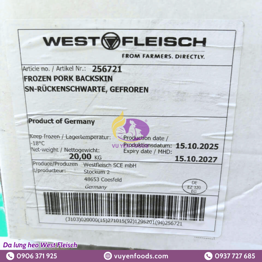 • Mã sản phẩm: DA LƯNG HEO WEST FLEISCH