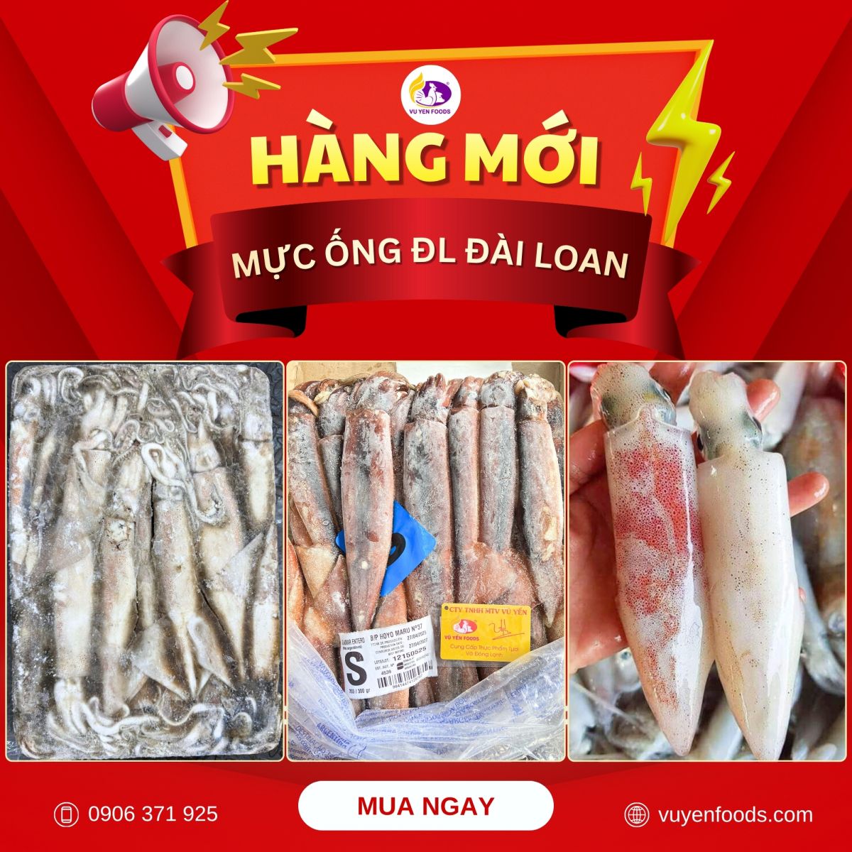 Nếu bạn đang tìm đơn vị cung cấp mực ống Đài Loan giá sỉ uy tín, hãy liên hệ ngay Vũ Yến Foods để được tư vấn chi tiết, nhận báo giá tốt và hỗ trợ giao hàng nhanh nhất.