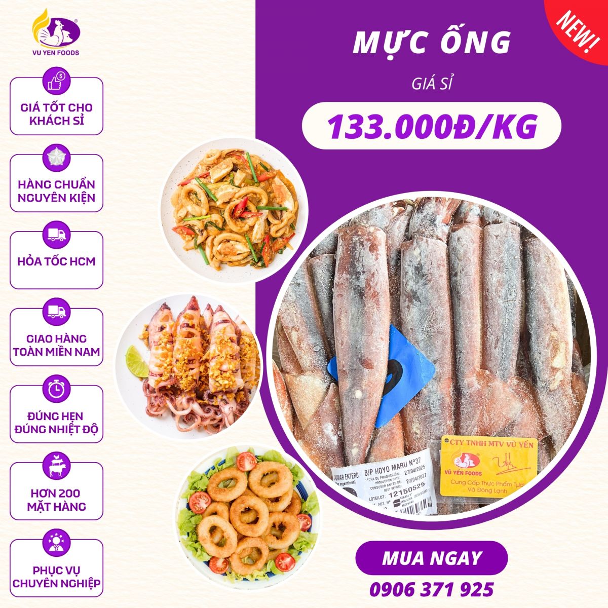 5. Vũ Yến Foods – Đơn vị cung cấp mực ống Đài Loan sỉ & lẻ uy tín